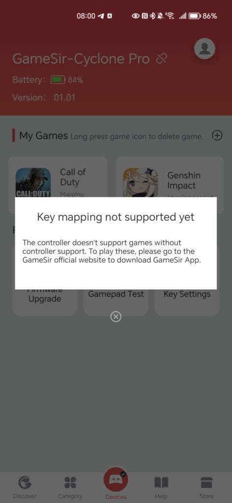 I can’t say I am keen on the mobile Gamsir app. It gets the job done, but the overall experience is poor compared to the Gamesir Nexus Windows app used on the GameSir G7 SE.