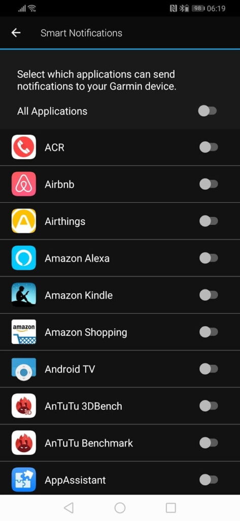 I love watch notifications; it is about the only smartwatch feature I am interested in for any watch. Notifications work well on the Garmin, but for some reason Garmin enables them by default, and new apps installs get enabled by default too. If I got a notification for every email I would lose my mind. You can manage what comes through though, under the main Garmin Connect App settings (not the device settings) there is a smart notification option. From here you can select what you get or don’t get.