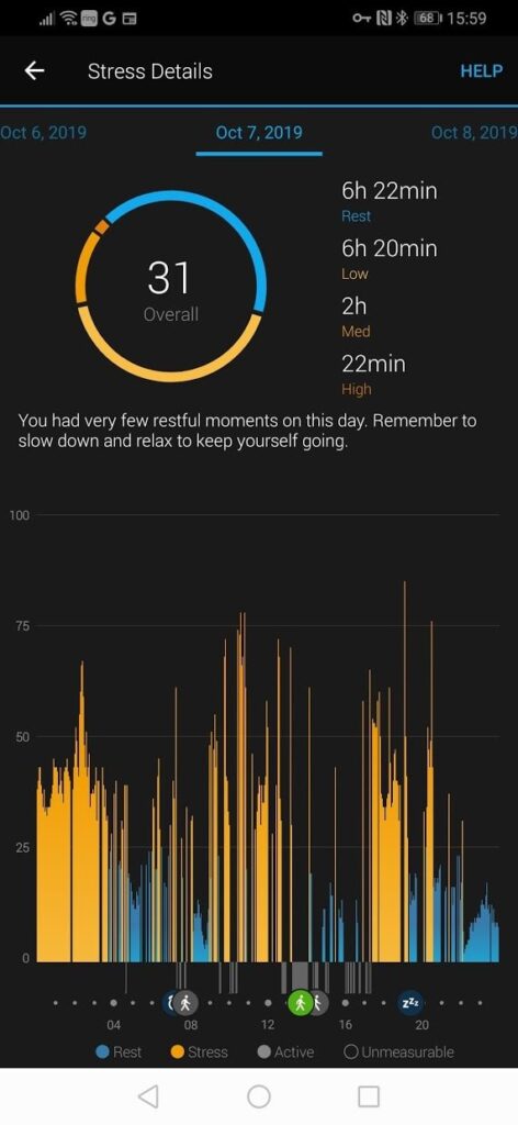 The same applies to body battery, I am yet to see it drop to a consistently low level, I guess I am just a well-rested person.