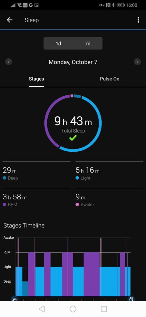 I had a terrible night sleep the Sunday after I had run my Marathon, but yet it said I had 9h 43mins.