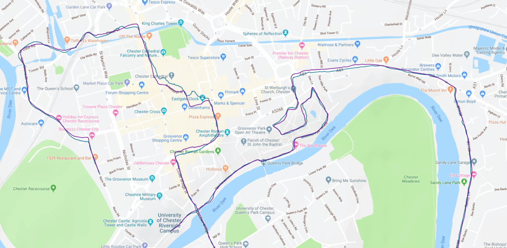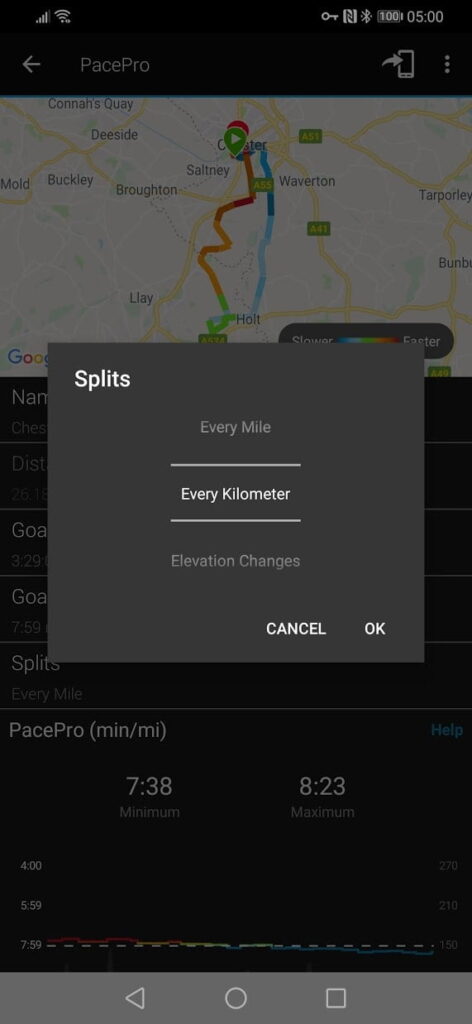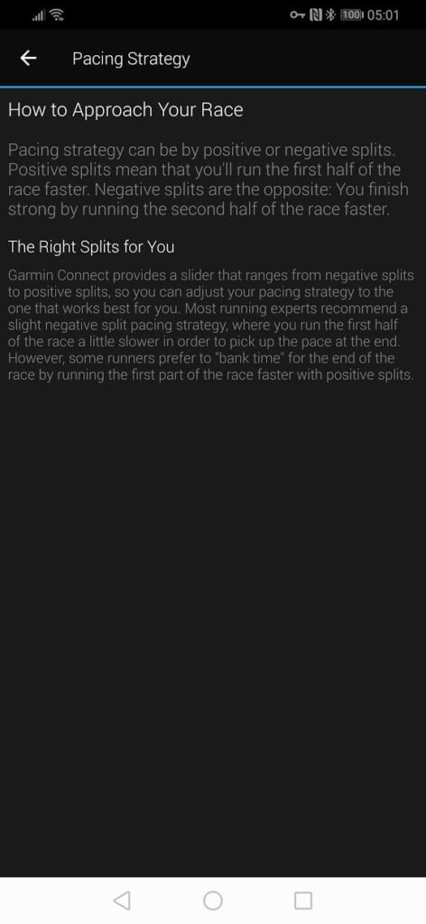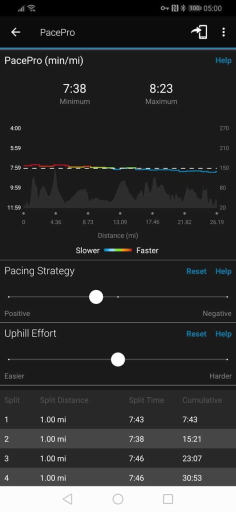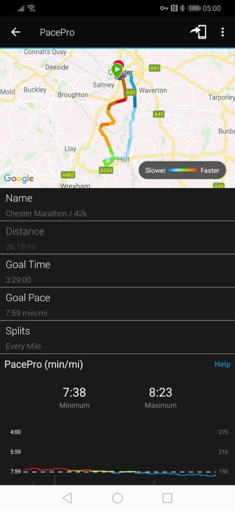 In my case, I used it during the Chester Marathon and uploaded the route providing a positive split pace strategy. Rather than just doing a linear positive split, Garmin adjusts the splits based on incline, so I took it easier uphill while going faster downhill.