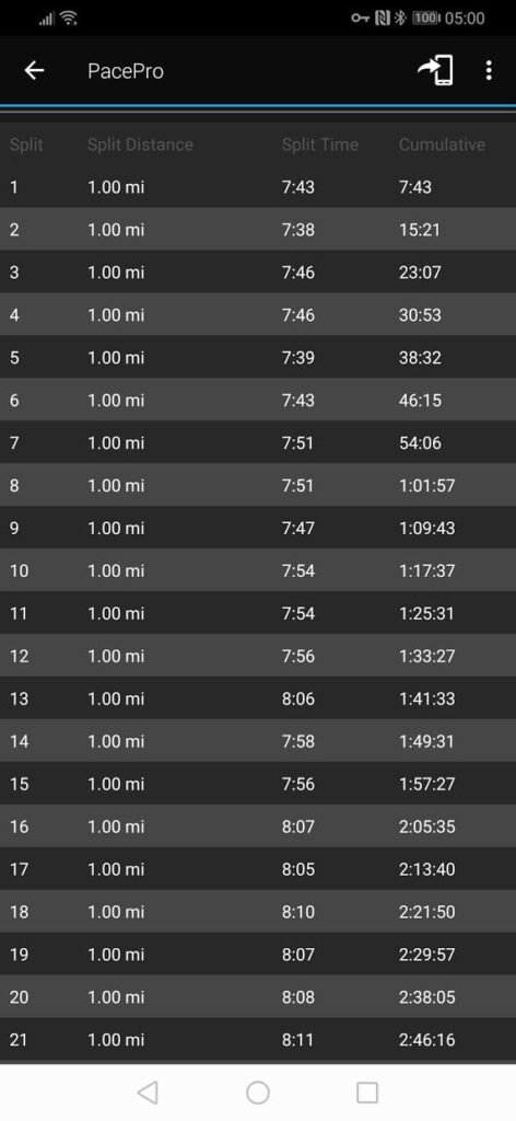 I did encounter a few issues during my race, the route was modified significantly due to the weather, so this threw things off, and this seemed to cause the overall ahead/behind result not to work. Also, not Garmin’s fault, but it didn’t take into account all the people at the start of the marathon.