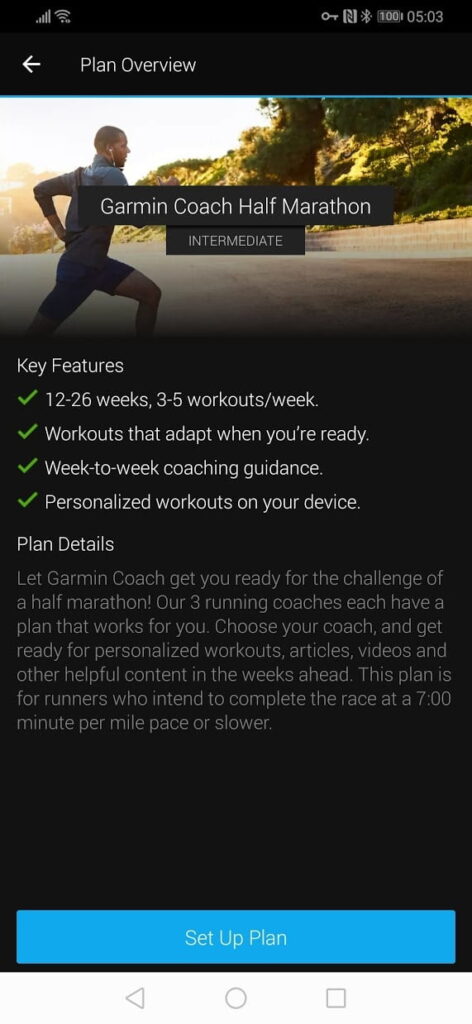 I didn’t have time to follow it, but I set up a level 3 marathon plan which was 16 weeks and 7 workouts per week. Once you subscribe to the plan, as you start a run it will ask if you want to follow the designated workout. The plans are created by professional trainers, with the Marathon plan I subscribed to being from Full Potential.