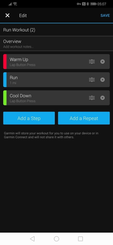 Finally, you even have workout options which a structured single workout. There are pre-defined ones or you can create your own.