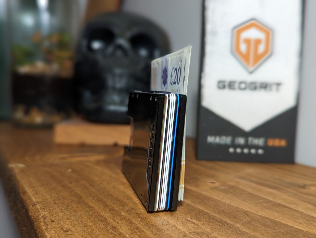 GeoGrit is one of the newer companies offering this style of wallet. They have seven designs, six are different colours of aluminium, and they have the carbon fiber wallet I have been sent. Each wallet has a choice of cash strap or money clip. Like most wallets in this style, these have RFID blocking built in, for increased security