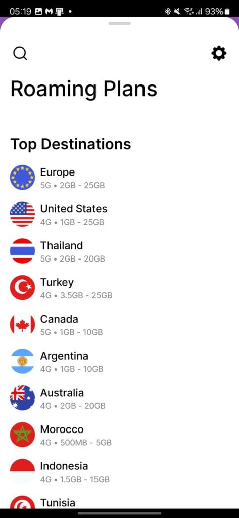 While it has fewer options than Airalo, it appears to cover the same number of countries; it just groups Europe together rather than providing individual country options.