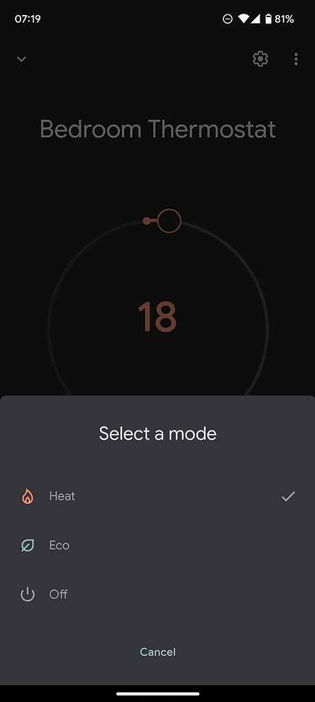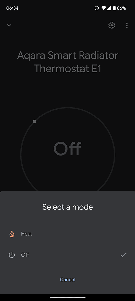 I can see all three of them within Google Home, and they all show the temperature and give me the option to adjust it. For the two bound to the Aqara G2h, I have options for heating, eco and off. The Matter bound one only has options for heating and off.