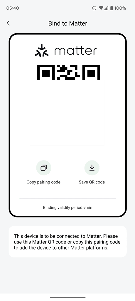 To bring a Matter enabled device into Google Home, you need to go into the device settings, and there should be a bind to Matter option. When you enable this, it provides you with a QR code that you can scan and a 12 digit code that you can use to manually bind the device.