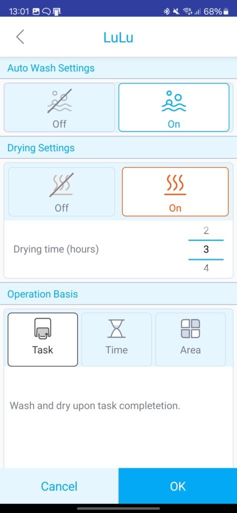 In the settings menu, you can adjust various preferences, such as suction power, water flow, mopping intensity, and voice volume. You can also set up cleaning schedules, define no-go zones or virtual barriers, and view cleaning history and logs.