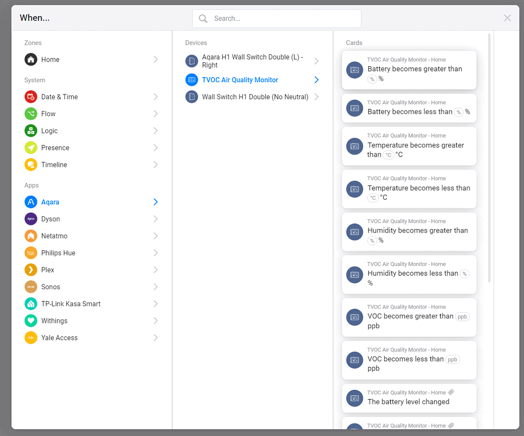 Things get a little more complicated with Aqara. Homey doesn’t connect with Aqara via an API in the same way as Hue or Kasa. The Homey Bridge is a Zigbee and Z-Wave hub, so you therefore pair up the Aqara devices directly with the hub.