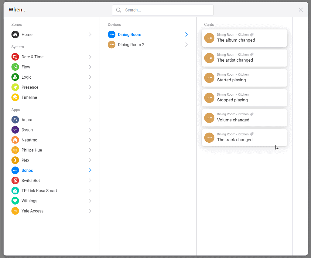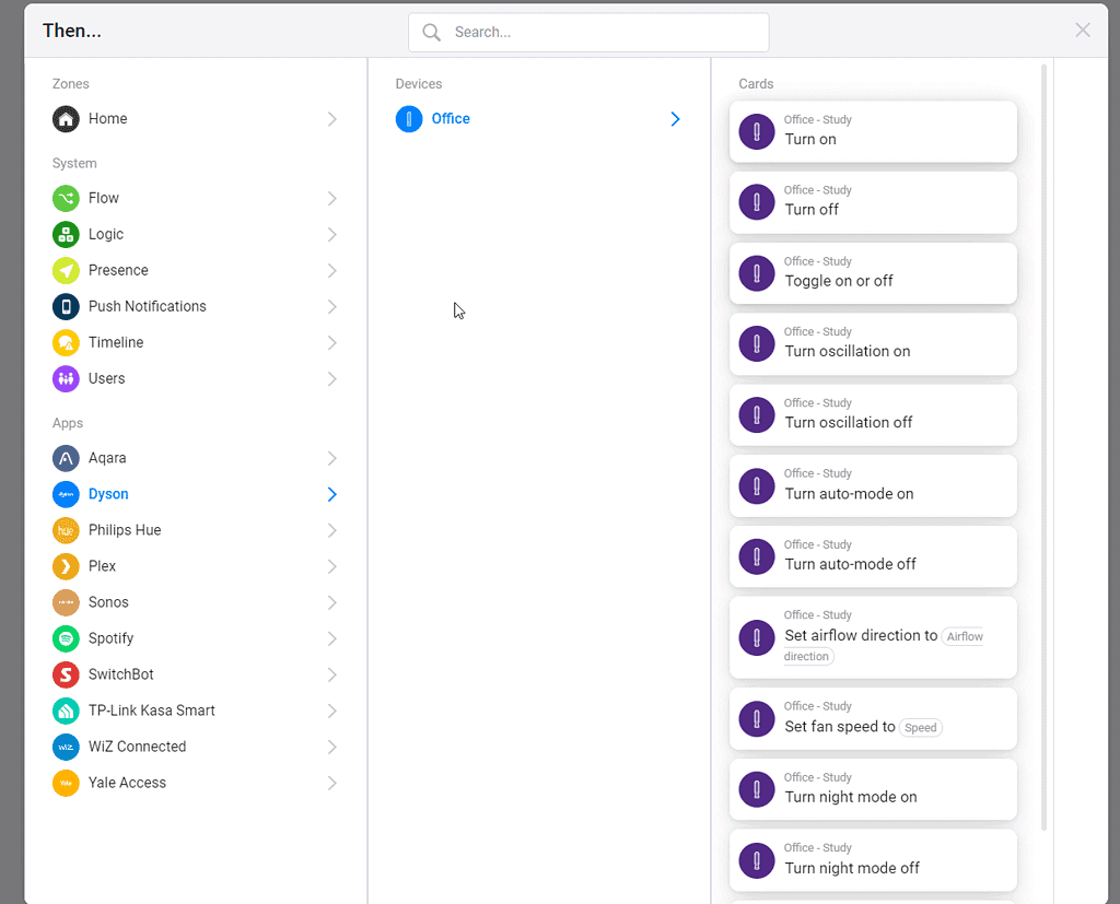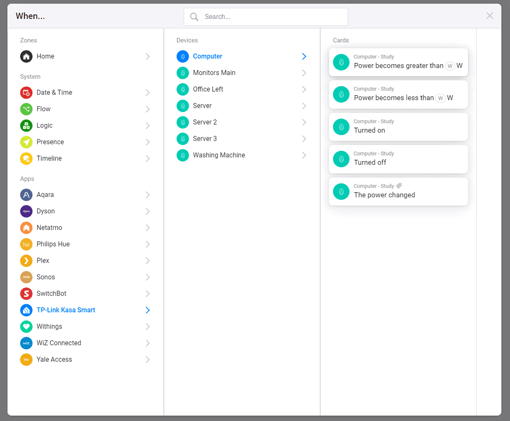 The flow options are good, as you would expect you have the on/off options, but you can also trigger events based on the power usage.
