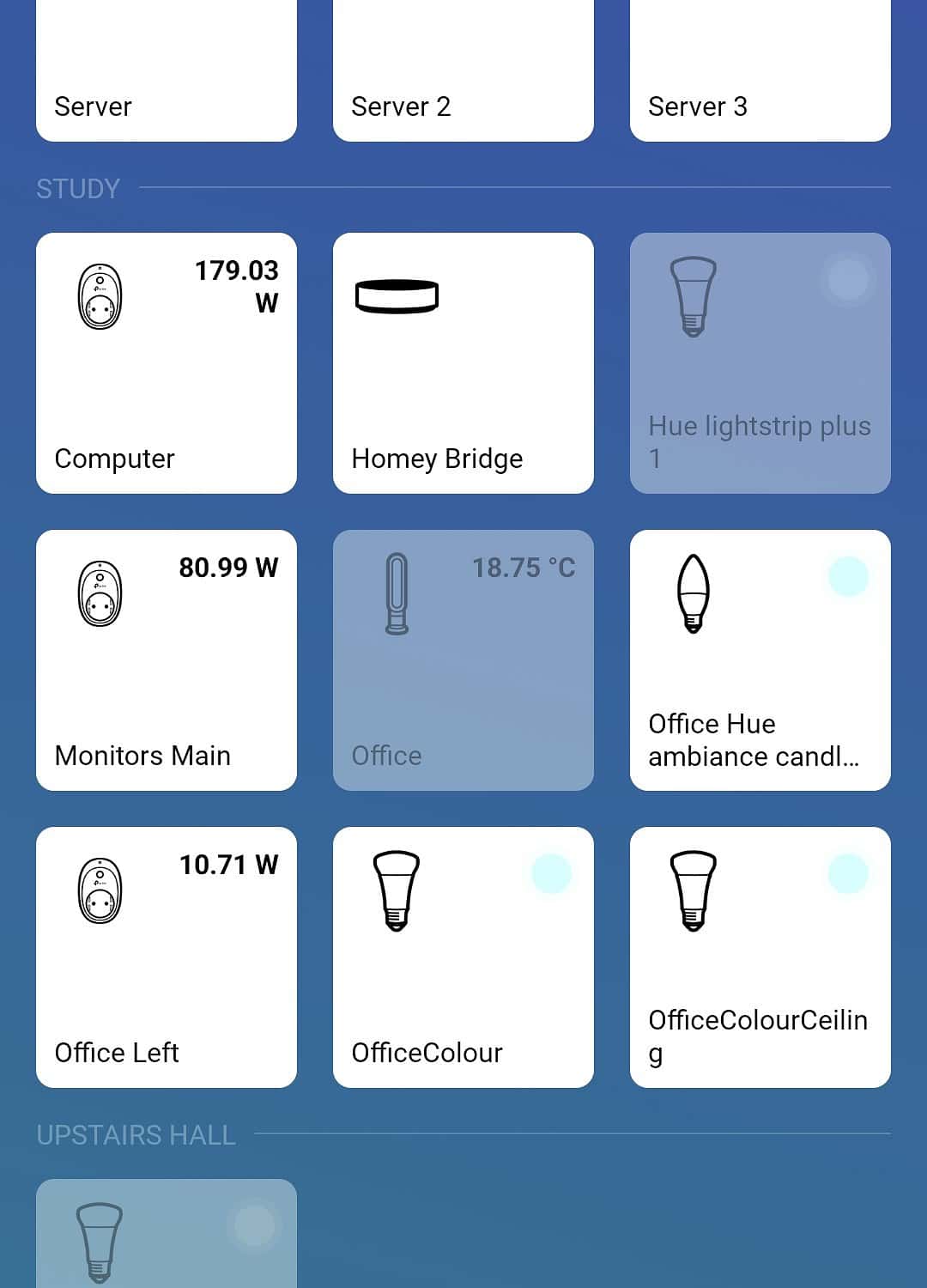 For Kasa, I have several of the Kasa HS110 energy monitoring smart plugs, and the Homey app conveniently shows the current energy usage.