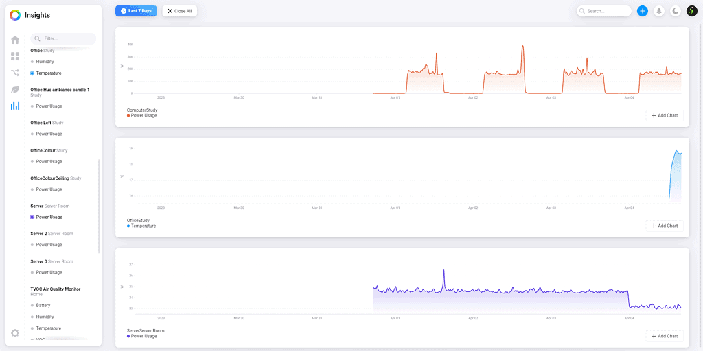 The web interface is also superior when looking at the insights interface, which graphs the usage of all your devices.