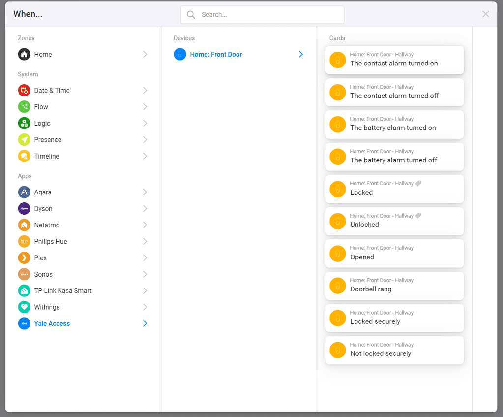For this, I can set up flows when the door is locked/unlocked and also for the battery alarm.