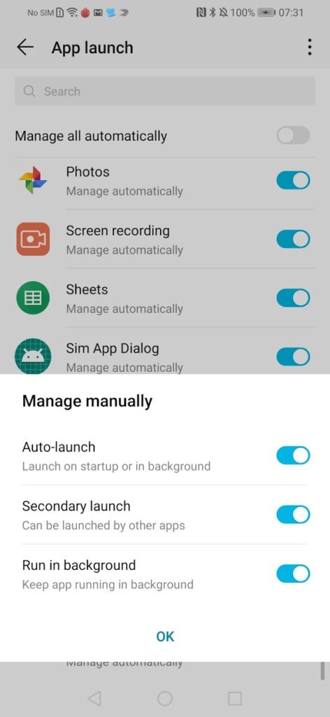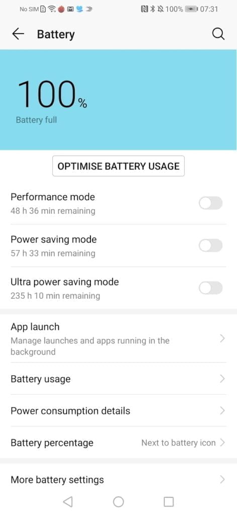 It uses the same app launch battery management I have on the Huawei P30 Pro, which can be both good and bad. It does help reduce rogue apps draining your battery and is one of the reasons why Huawei/Honor devices have the best stamina on the market. On the flip side, it is aggressive by default, stuff you want notifications for need to have the automatic management switched off.