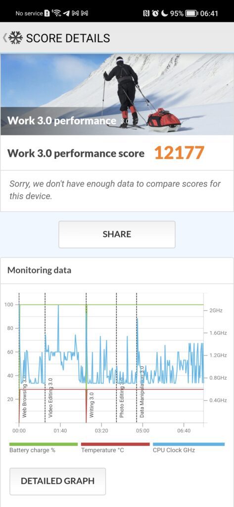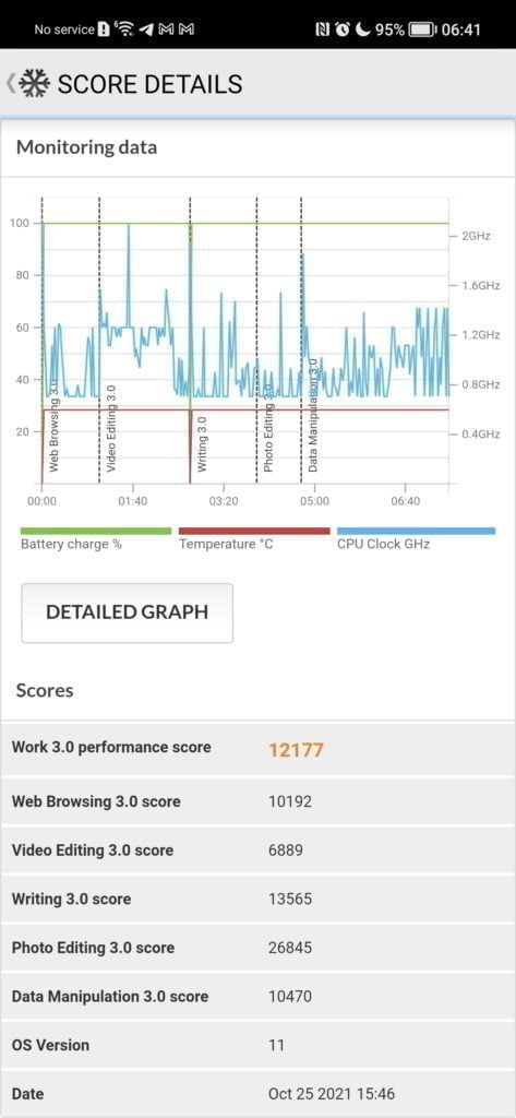 The Antutu result was also almost the same as the Realme GT Master. However, the PCMark 2.0 result was significantly higher with a score of over 12k. Looking at the CPU graph charts doesn’t seem to reveal the phone leaving the clocks locked too high.