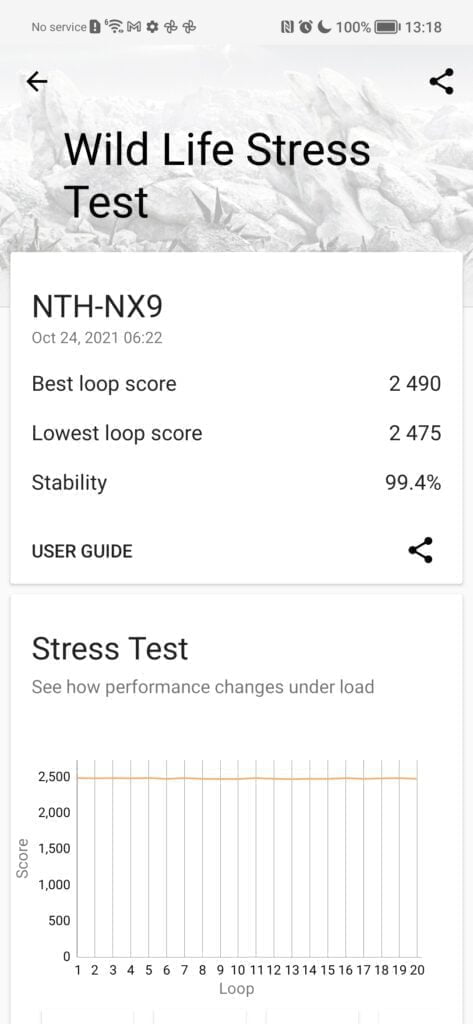 My 3DMark Wild Life result was almost identical to the official 3DMark results page for the Honor 50. The SD778G also offered almost perfect stability-indicating there are no problems with thermal throttling. It is a long way off the SD888 and even behind the Mediatek Dimensity 1200, but it is more than capable of playing any game you want.