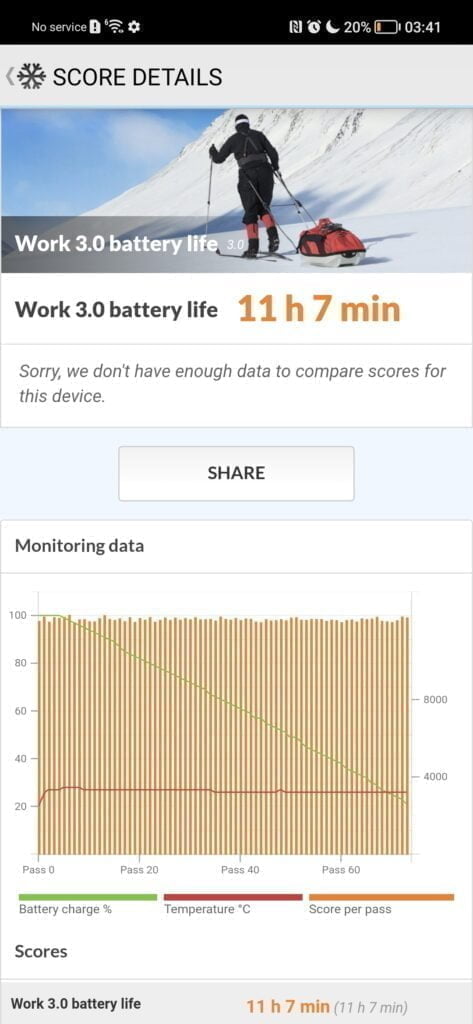 The PCMark 2.0 battery test was quite a bit lower than I had first expected, this is likely due to the very high PCMark score. With a score of 11 hours 7 mins, this is 3 hours shorter than the Realme GT Master. In real life usage, I can’t say I noticed that much difference.