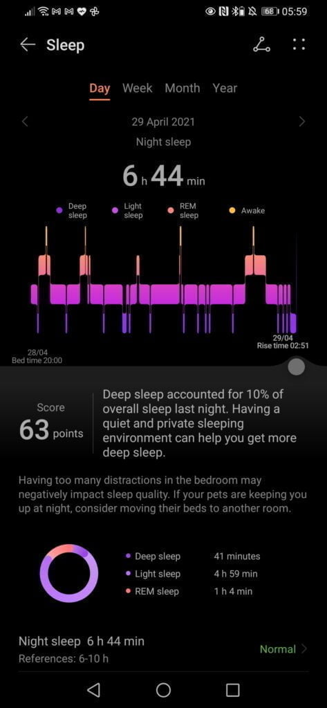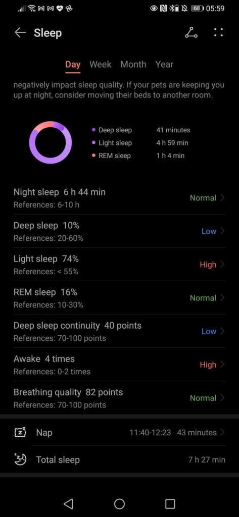 However, I am a bit of a freak with my sleep; I’m normally in bed at 7:30 pm and get up at 3 am. My brain doesn’t like me, and that’s the time it has chosen for my sleep routine. I stick to that routine 7 days a week, and I am a big believer in the circadian rhythm and the need to maintain a regular sleep cycle. Every Huawei/Honor device I have used has me going to bed at 8 pm. I am not sure if this is hardcoded for sleep tracking to start or if the watch has just identified this as my usual sleep cycle.