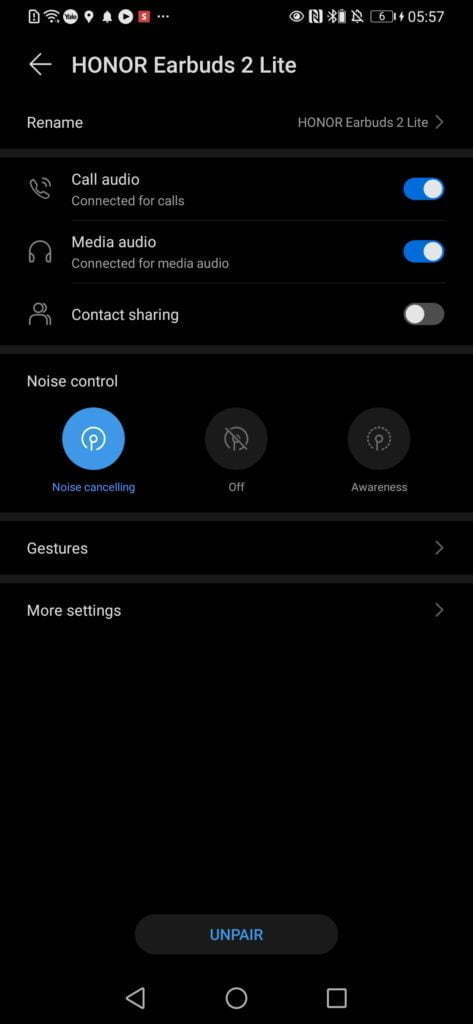 The Honor Earbuds 2 Lite use the AI Life app, similar to all the Huawei earbuds. If you are already running a Huawei or Honor phone, the phones built-in Bluetooth settings menu offers all the functionality from the AI life app.