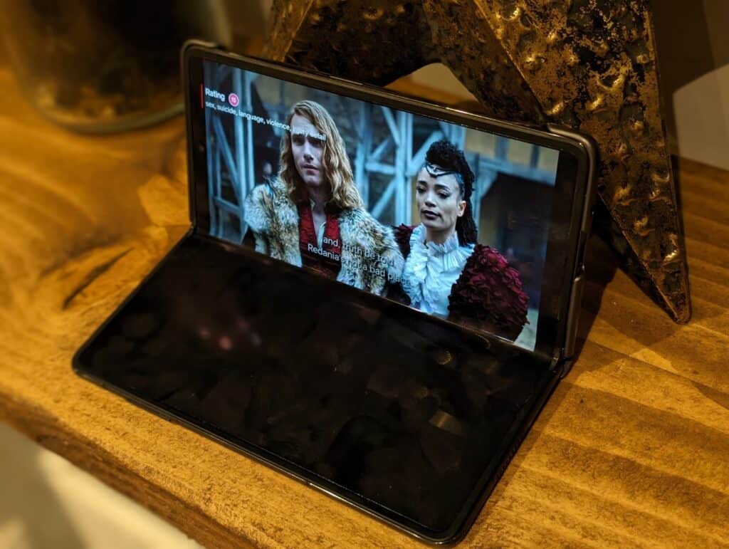 For some apps, this is not always advantageous, if you watch Netflix on the unfolded display, you get roughly the same sized image, just bigger black bars on the top and bottom. But, if you half-close the phone, the Honor doesn’t have the same black bars on the left and right.