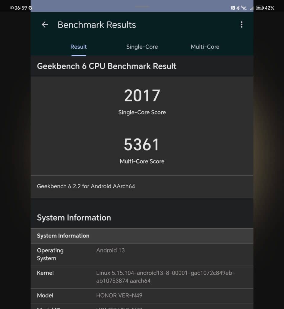 In Geekbench 6, the Magic V is a touch better than the Magic5 Pro with a score of 2017/5361 vs 1949/5235