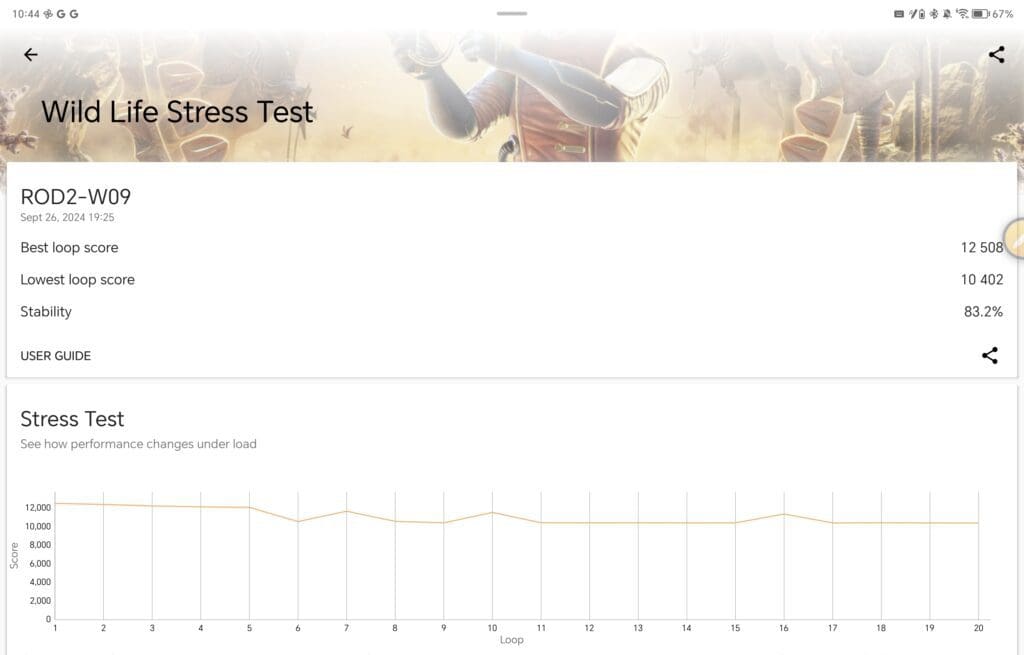 - Honor MagicPad2: 12508 high, 10402 low, 83.2% stability
