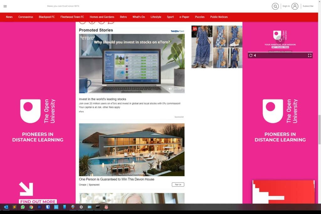 Again, the three test sites display no adverts at all, and Blackpool Gazette was completely unbrowsable (it’s a truly awful website).