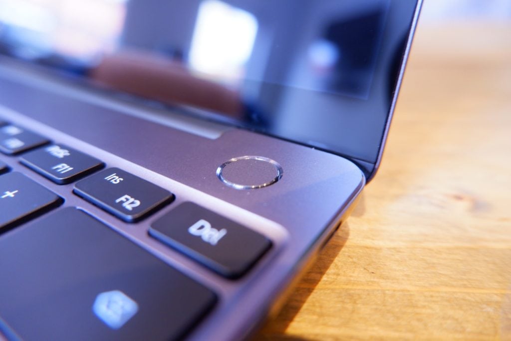 The power button of the Huawei MateBook 13 comes with an integrated fingerprint sensor. The fingerprint scanner supports Windows Hello and therefore can be set up quite easily. I have found this to be accurate and extremely quick to unlock, and I prefer it to the face unlock alternatives which can sometimes be a bit hit and miss depending on where you have placed the laptop.