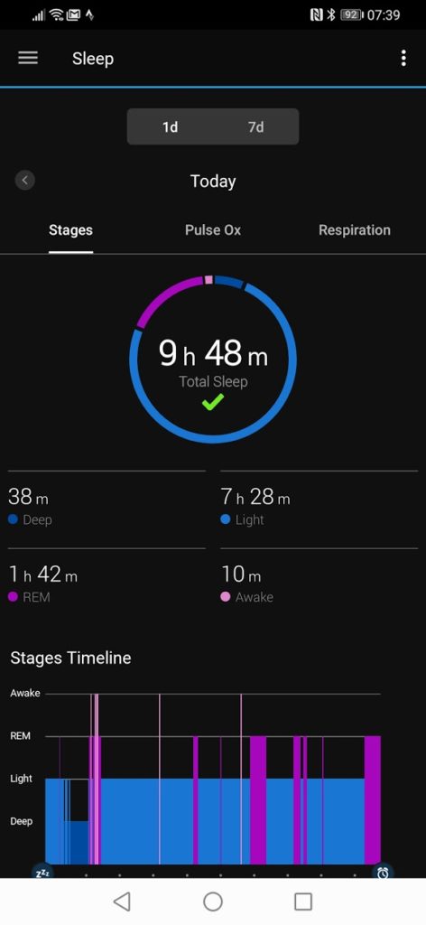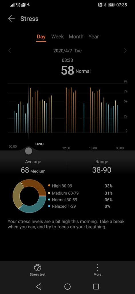 Gauging the accuracy of the stress tracking is harder, Garmin says I am not stressed at all, Huawei thinks I have medium stress most days. I would say Huawei is probably closer to the truth.
