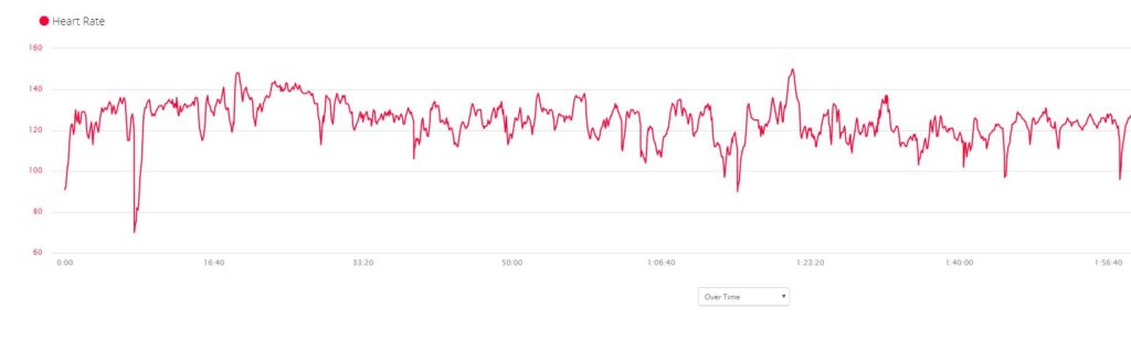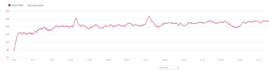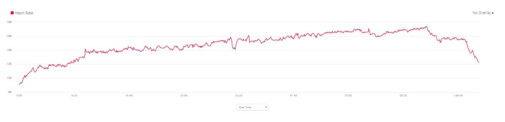 My Zwift data exported to Strava and the heart rate was tracked with the Polar OH1, with this my heart rate was recorded as 141bpm at 15 minutes 42 seconds. On my Garmin Fenix 6 using wrist HRM that recorded 139bpm.