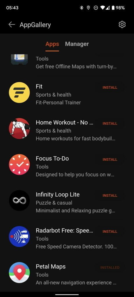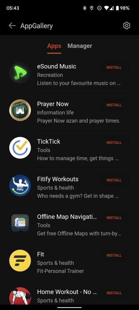 For the Huawei Watch GT 3, you can install apps but this is via the AppGallery option within the Health app. The selection of apps is slimmed down to around 24. The selection of apps is relatively poor, but there are three fitness/workout apps. Sadly, none of the fitness apps offers anything like Strava integration.