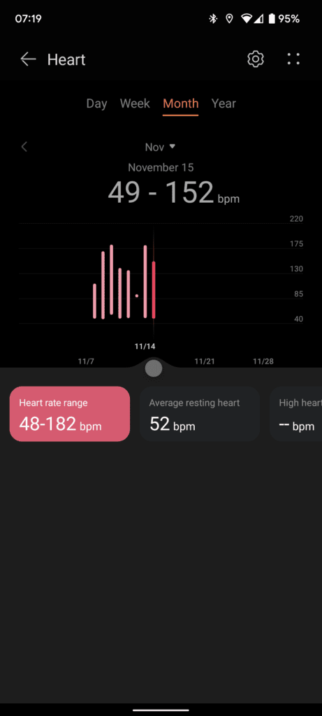 As far as wrist-based tracking goes, Huawei appears to live up to the claims. It is not perfect, but I found it to be considerably better than my Garmin Fenix 6 Pro when using the wrist HRM. For whatever reason, my Garmin has been terrible for tracking my heart rate on gently walks recently, often claiming my heart rate is 125bpm.
