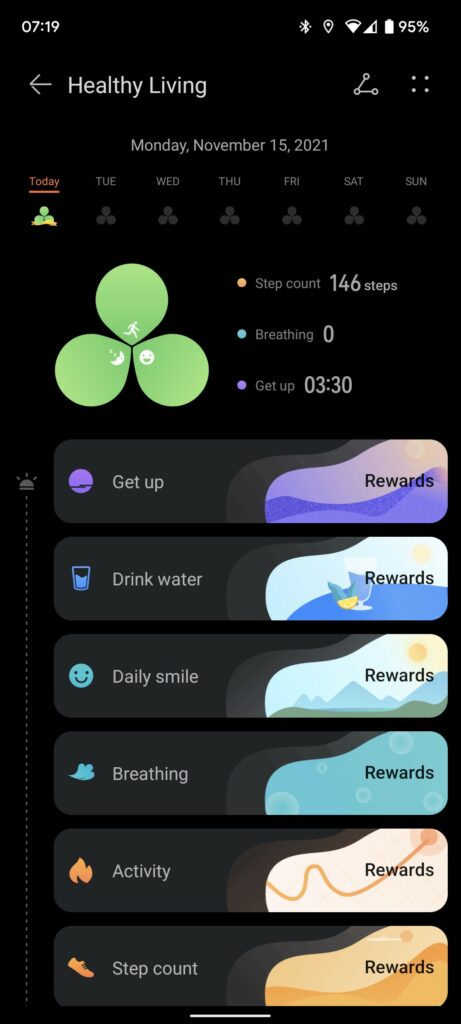 Huawei has always had an excellent and extensive amount of health features. The GT 3 now includes a Healthy Living option which allows you to set goals and provides advice.
