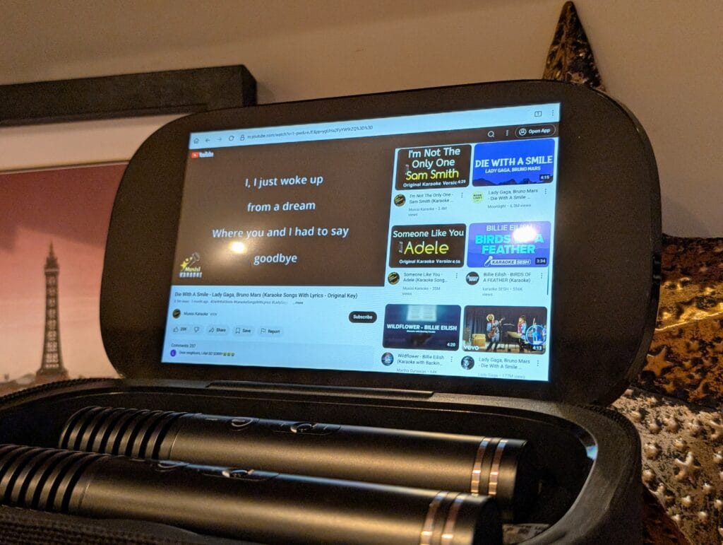 The system offers good value when considering its built-in Android tablet, wireless microphones, and included KaraFun subscription. It’s particularly suited for families, casual karaoke enthusiasts, and those prioritising portability over maximum sound output.
