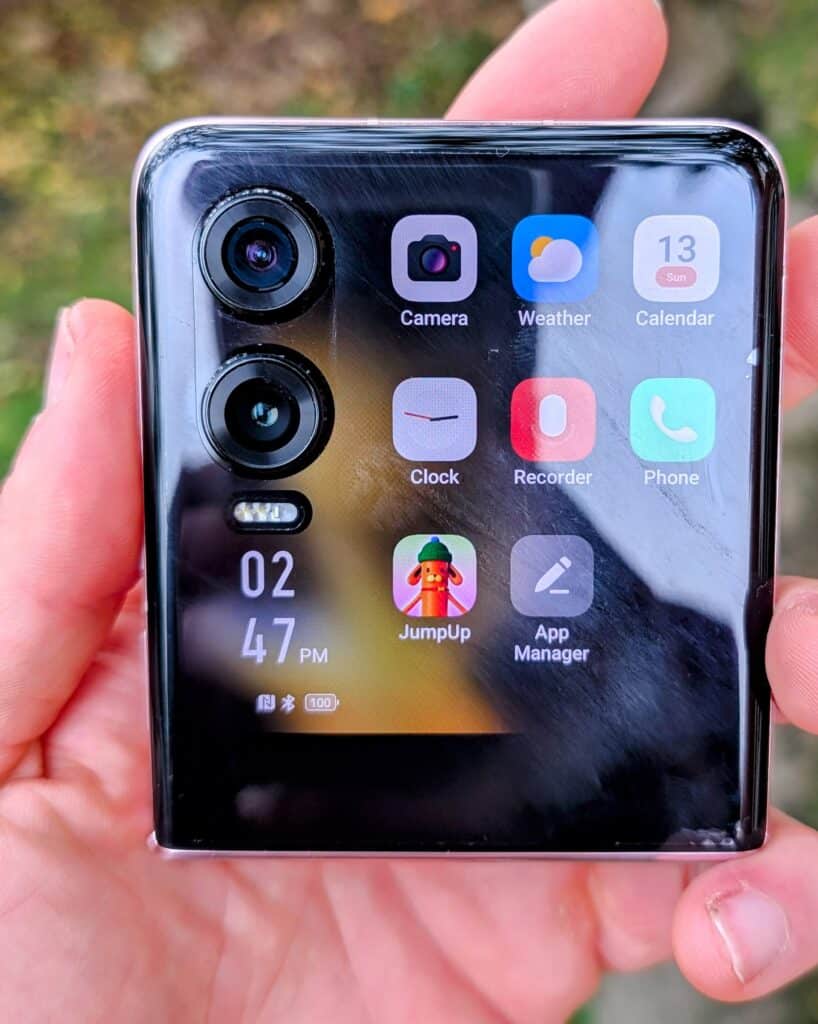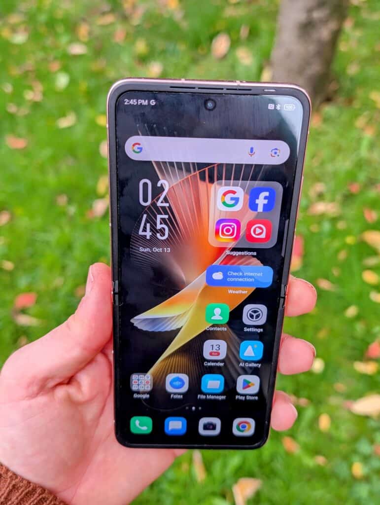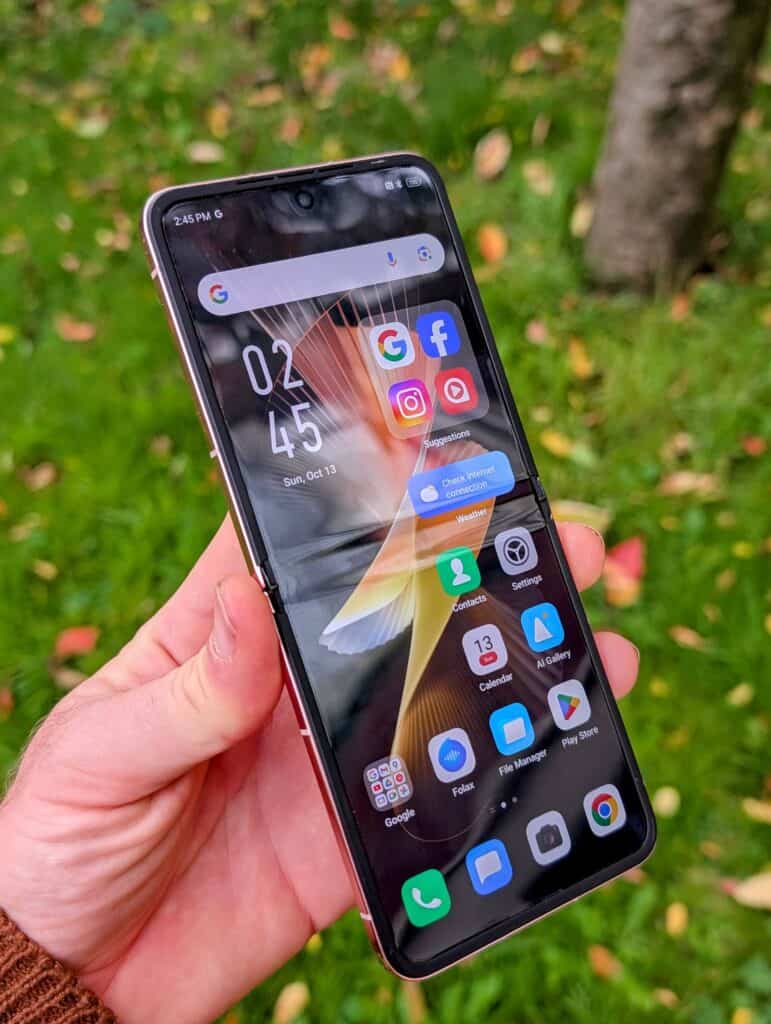 However, there are some drawbacks. The brightness level, while high, is behind newer models like the Xiaomi Mix Flip, which can reach up to 3000 nits. This limitation becomes apparent in direct sunlight, where visibility can be slightly compromised. While the display is satisfactory for indoor and moderately bright conditions, it doesn’t quite match up to the competition when used outdoors under bright sunlight.