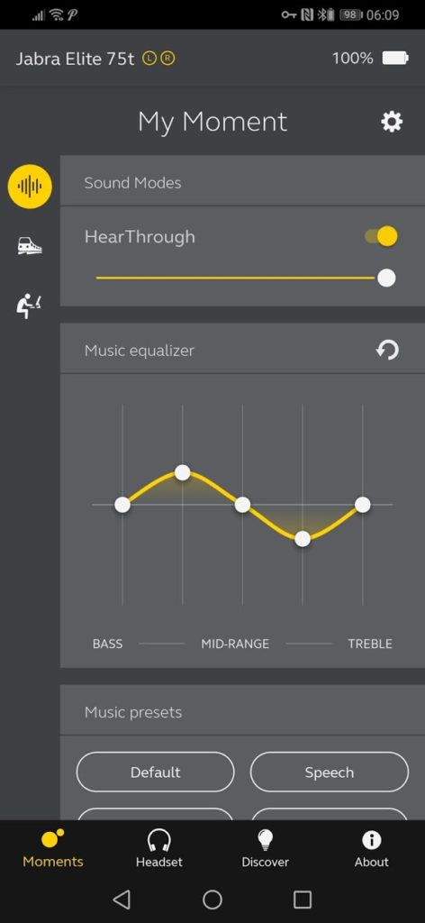 Like most £100+ earphones, this has a companion app, and this is better than your average one. You can do the usual stuff such as upgrade the firmware and monitor the battery levels of each earphone plus the case. You can then tweak the EQ, either by the presets or manually, then enable and tweak hear through mode allowing you to hear the environment around you, and finally locate your earphones, including playing a sound to help find them.