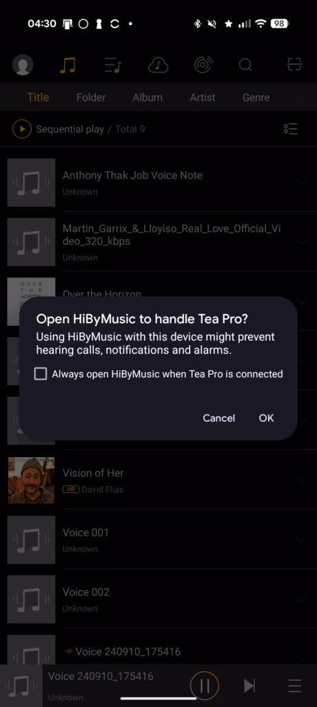 To test the audio formats, I had to download some test files. OPPO has a page listing some high-quality DSD and FLAC files. Over Bluetooth, the Tea Pro supports up to PCM 96 kHz/24 bit, whereas with USB and UAC2.0 it supports up to PCM 768 kHz or DSD512 (Native).