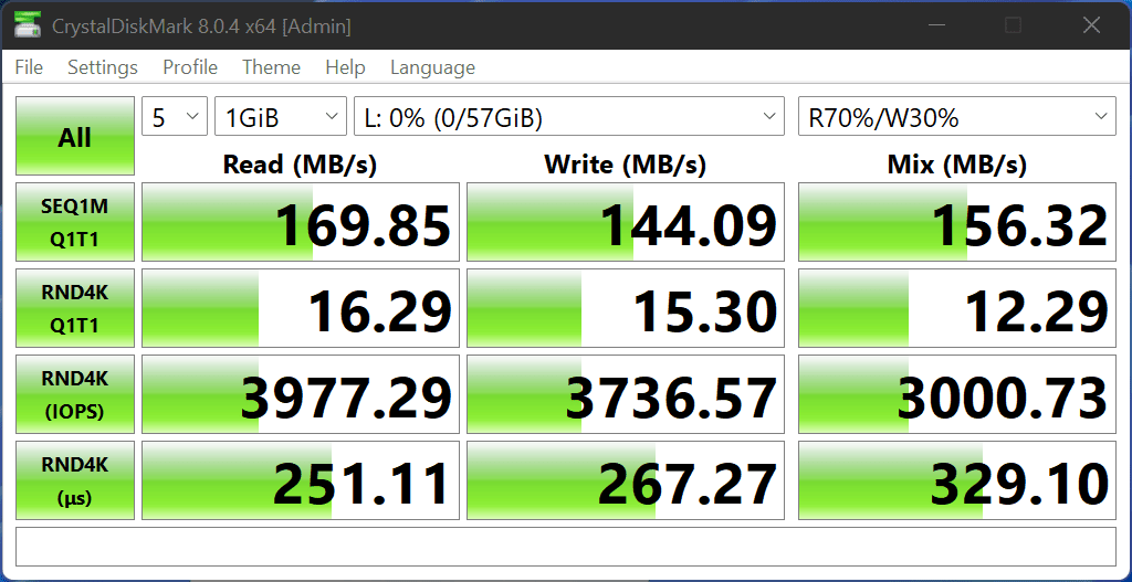 - USB 2.0: 16GB – 128GB: 30MB/s read, 20MB/s write