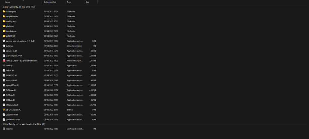You plug it in, then Windows recognises it has a DVD drive, and from here, you can run the IronKey application.