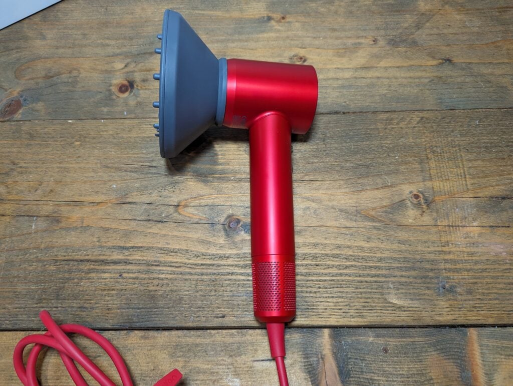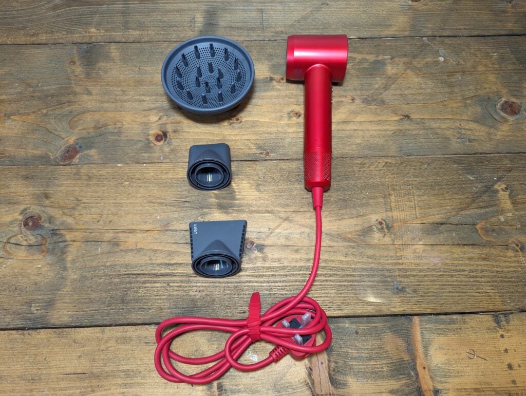 The hair dryer is available in four colours matte black, silver blue, pearl white and the ruby red that I was sent.