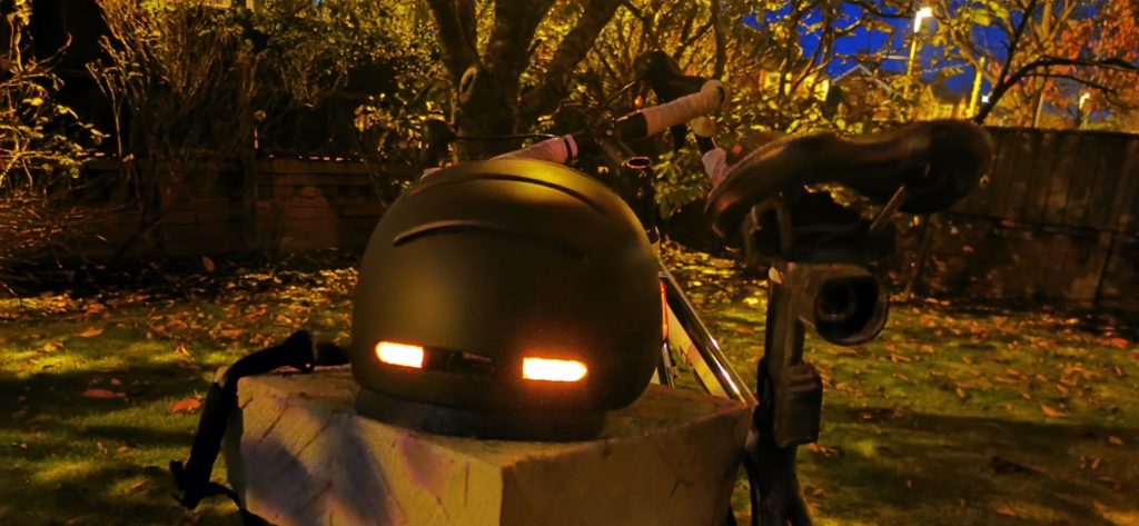 As well as the main lights, the helmet works as an indicator via the remote control you attach to your handlebar. This then allows you to use your thumb to press the indicator as you turn, which is likely much more visible in the dark than using a hand single. In some scenarios, like needing to turn through a roundabout, I don’t feel very safe trying to accelerate and hand signal, and I have been beeped at more than once for failing to signal. So with this I can still signal while keeping my hands securely on the handlebars.