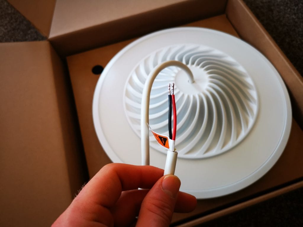 With this being a complete pendant lamp, it needs to be wired directly into your home wiring, my DIY skills are poor at best, but fitting lights is relatively easy and safe as long as you switch off the power to the lights at the mains. With all the LEDs being built in, this is quite a heavy lamp, so when you are installing it some consideration will need to be taken into account where your screws go. I would say ideally you would want to get it into a wooden joist. The lamp does come with proper fittings though, which includes plastic plugs and this is probably fine for plasterboard (but don’t take my word for it).