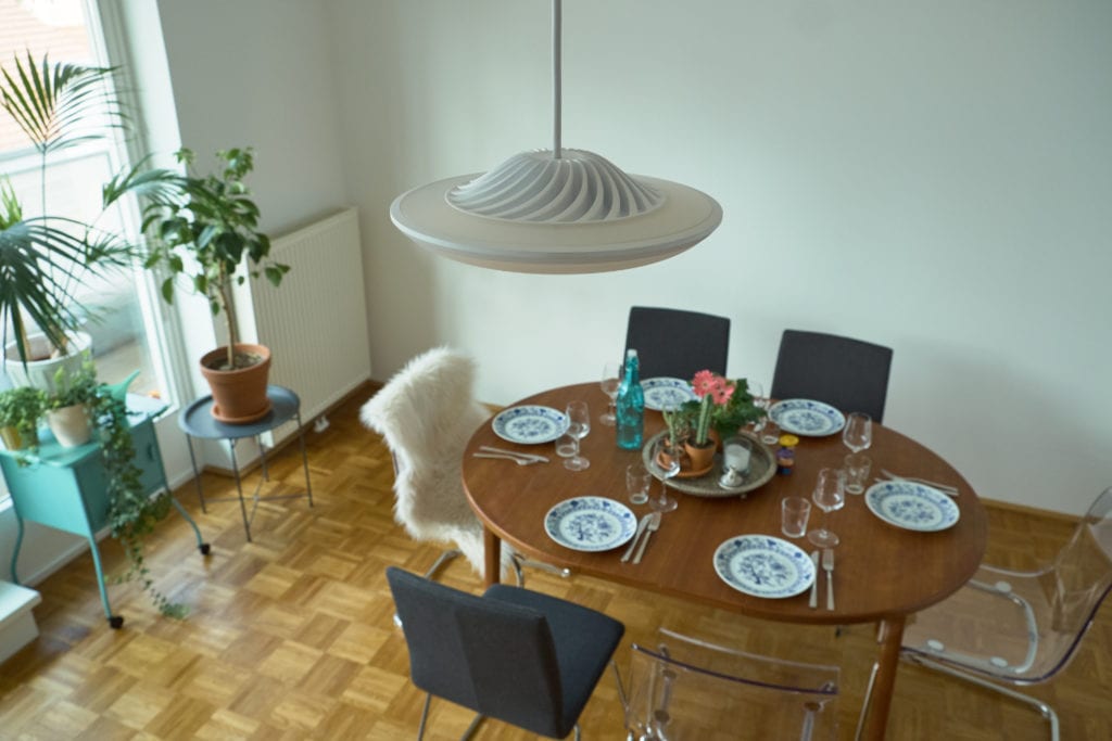 So, when I heard that the Luke Roberts pendant was capable of 4000 lumens with its downlight and an additional 1400 upwards, I was keen to try it out. For comparison, a single Philips bulb achieves around 800 lumens, so this is 5 times as bright just for the downwards facing LEDs.