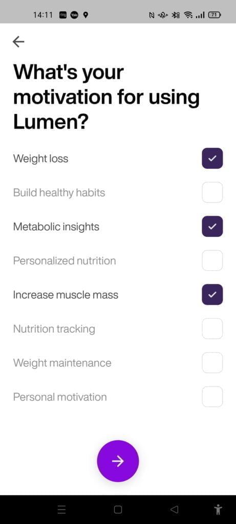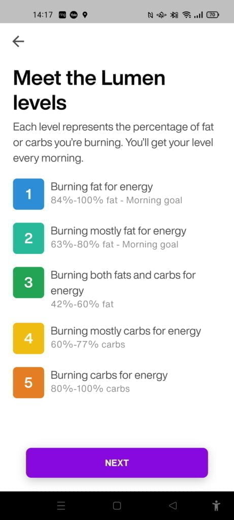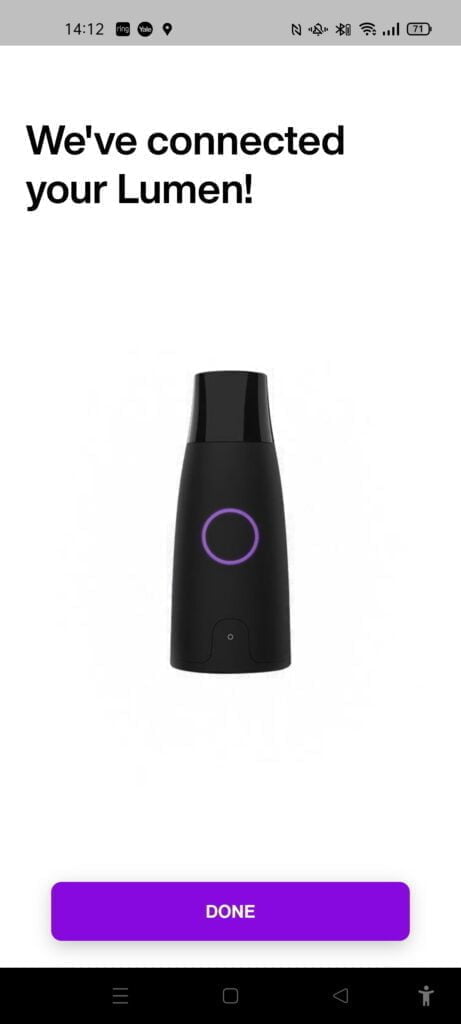 The app auto detects the Lumen, so there is no faffing around with pairing things. You will then need to go through some basic questions about your goals and your diet. Finally, you will be taught how to use the Lumen.