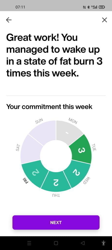 Again, I didn’t really follow this. For day to day fitness, I prefer doing things fasted as I find that for short intense or for cardio under an hour, I perform better fasted. Thanks to Lumen, it motivated me to stick to this. If I have a hunger pang, it is sometimes a little too easy to pick up a granola bar or something.