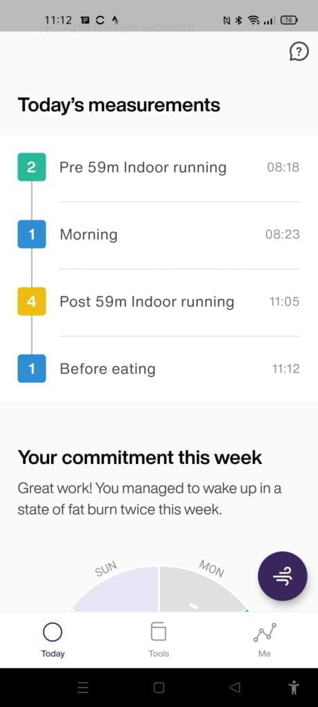 To make the most of the Lumen, you need to take multiple readings per day. This is one of the biggest issues Lumen has. It requires quite a lot of discipline to remember to repeatedly take these readings. In theory, you could be taking readings for the morning, pre & post-exercise, pre-lunch/post fast, post-lunch, pre-dinner, post-dinner and pre-bedtime readings. I doubt many people do that, but I would guess 3 readings per day is ideal, and the more, the better, at least until you have an understanding of your body and the nutrition plans.