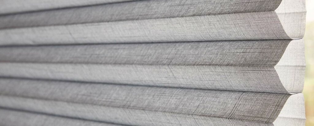 Pirouette shades have an opaque backing with folded fabric slats to create a textured look that cuts back on noontime glare and making evening light linger for longer.