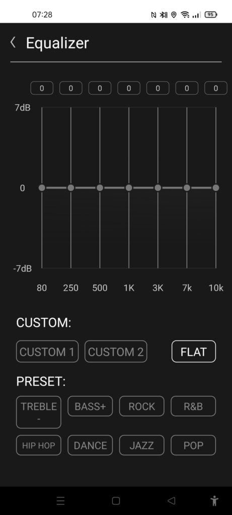 The out of the box sound profile is very balanced with a more subtle bass than you find compared to many consumer orientated TWS earphones. They offer excellent detail and clarity across ranges, and the more I listened to them like this, the more I enjoyed them. It is good when you want to listen to the actual music rather than have some loud boomy background noise. I also experienced no harshness in the higher end, something many earphones are prone to.
