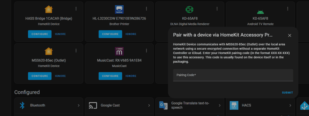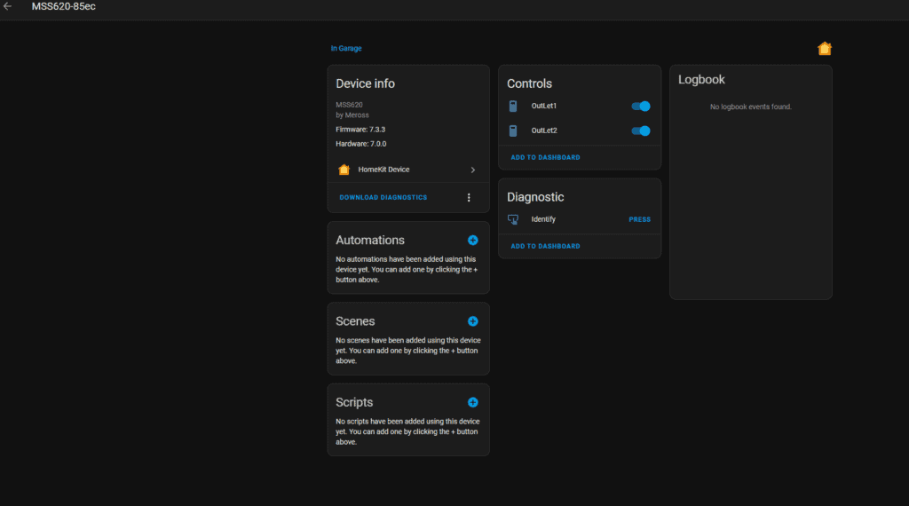 The MSS620 can be integrated directly into Home Assistant using the Meross LAN custom integration. This allows local control without relying on the cloud. Alternatively, you can use the HomeKit functionality of Home Assistant and integrate it this way. As I had previously used the Meross LAN, I tried out HomeKit and it worked perfectly.